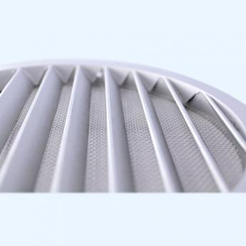 Серия РКМ. Решетки с горизонтальными наклонными жалюзи, защитной сеткой и фланцем, выполнены из алюминия. Применяются для наружного монтажа.