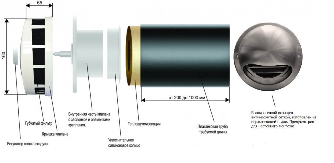 Внимание: длина утеплителя в трубе клапана составляет 20-25 см..