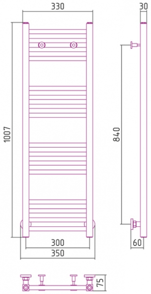 Внешние габариты (высота х ширина х глубина) (мм) : 1007 х 350 х 75
