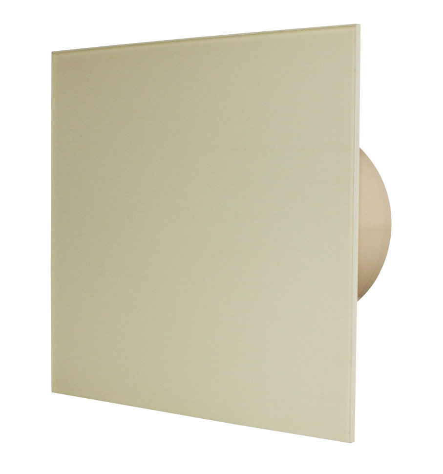 Дизайнерский бесшумный вентилятор кремовое стекло, с датчиком влажности. Включается при влажности более 70%.